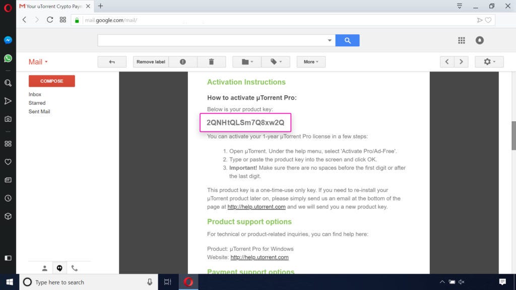 Open uTorrent, then enter your product key found in the email.